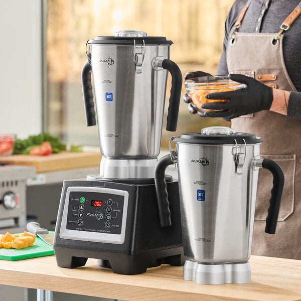 3 3/4 hp 1 Gallon Stainless Steel Heavy Duty Commercial Food Blender with Timer and 2 Jars - 120V